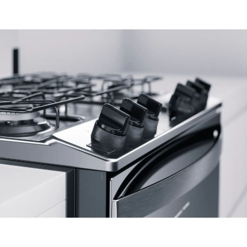 Inspirado nos fornos de embutir, os fogões possuem o revestimento esmaltado e liso, mais fácil de limpar se comparado ao forno comum de superfície áspera.