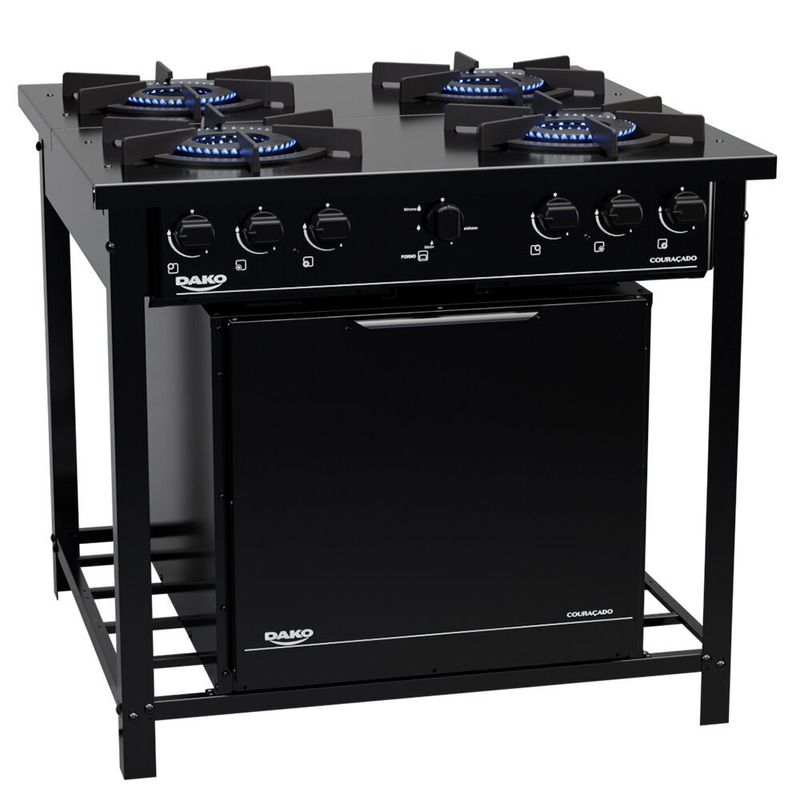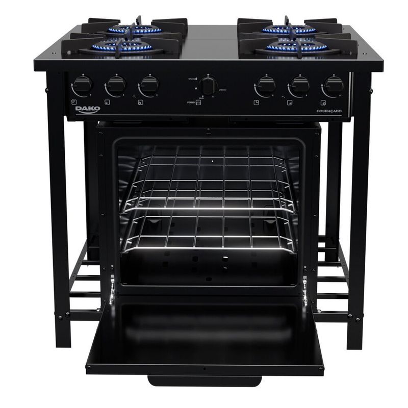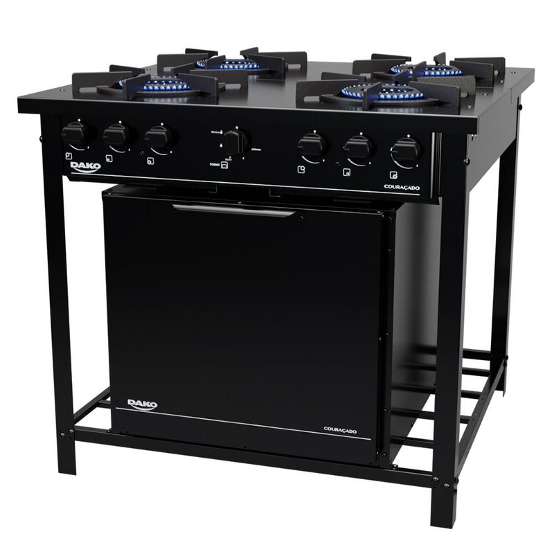 Para garantir grande produtividade em uma cozinha profissional, você precisa de equipamentos modernos e que assegurem o rendimento. Sendo assim, a Dako apresenta o Fogão a Gás Industrial de Piso Dako Couraçado, 4 Bocas com Forno que garante robustez, durabilidade, versatilidade e potência para a cocção de alimentos de média ou grande escala. Com mesa em aço e revestimento limpa fácil, a limpeza é descomplicada. Sua estrutura é reforçada com trempes em ferro fundido com 6 pontos de apoio, queimadores tripla e dupla chama com duplo controle e ainda acompanha bandeja coletora de resíduos. Além disso, conta com forno com puxador de metal, porta de aço e capacidade de 107 litros.