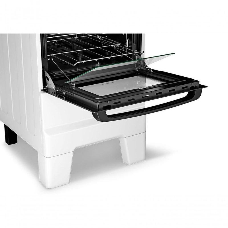 Fogão A Gás Mesa Inox Tampa De Vidro Forno 50L Esmaltec Ideal Master Branco 4 Bocas Bivolt