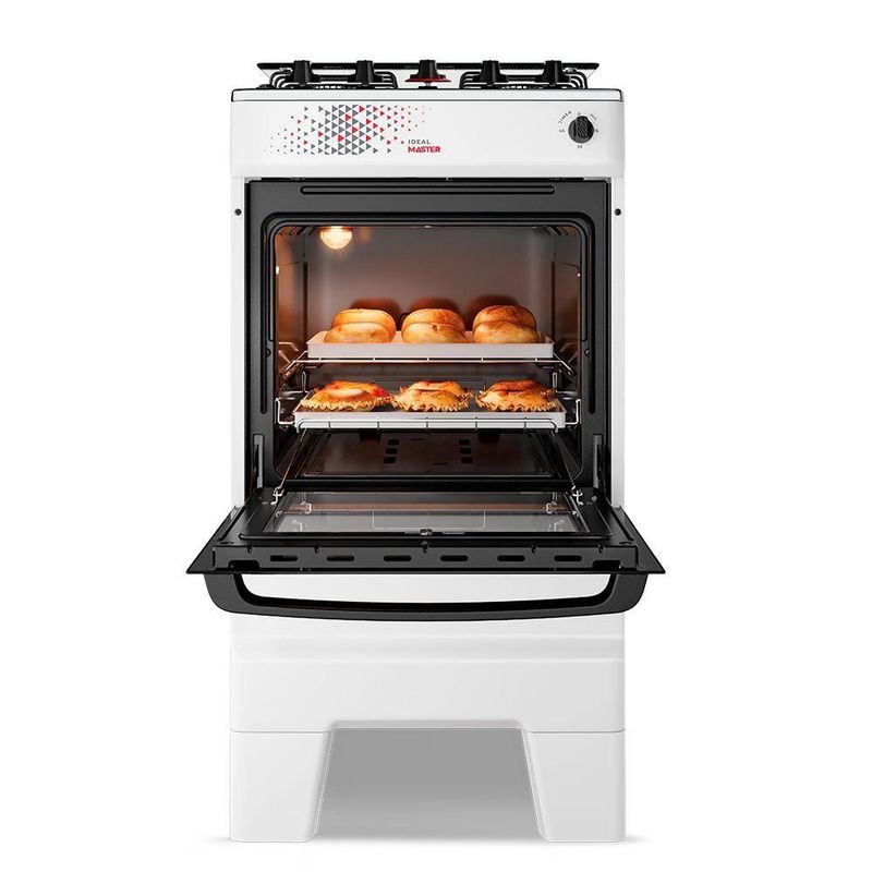 Acendimento automático: mais agilidade no uso.Mesa em aço inox: resistência e facilidade na limpeza.Tampão de vidro: estilo e praticidade para sua cozinha.Trempes duplas em aço esmaltado: estabilidade reforçada para as panelas.Timer mecânico: controle de tempo direto no painel.Forno Limpa Fácil com 50 litros de capacidade: ideal para as receitas do dia a dia.1 grade deslizante + 1 grade autodeslizante: mais praticidade e segurança no forno.Porta do forno em vidro total com vidro interno removível: limpeza e visual moderno.Pés altos e retos com encaixe fácil: estabilidade e limpeza facilitada.O Fogão 4 Bocas Esmaltec Ideal Master a Gás com Mesa Inox Branco é a escolha ideal para quem busca robustez no uso e acabamento sofisticado. A mesa em aço inox oferece resistência facilidade na limpeza, enquanto o tampão de vidro agrega estilo e funcionalidade ao ambiente, protegendo a mesa entre os usos.O modelo conta com acendimento automático, queimadores bem distribuídos (2 família e 2 pequenos) e trempes duplas em aço esmaltado, que garantem estabilidade e segurança no preparo das refeições.O forno Limpa Fácil com 50 litros de capacidade vem equipado com porta em vidro total, vidro interno removível e duas grades (uma deslizante e uma autodeslizante), proporcionando mais praticidade e segurança no manuseio de assadeiras.O timer mecânico permite o controle do tempo de preparo direto no painel, enquanto os botões removíveis, puxador ergonômico e pés altos com encaixe fácil completam a experiência com conforto e funcionalidade.O Esmaltec Ideal Master 4 bocas branco a gás é um fogão completo para quem valoriza desempenho, estilo e praticidade na cozinha.Isso é valor. Isso é Esmaltec.Quantidade de Bocas: 4 | Produto: Fogão | Alimentação: A gás | Mesa: Aço Inox | Acendimento automático: Sim | Voltagem: Bivolt | Cor: BRANCO | Tipo: De piso