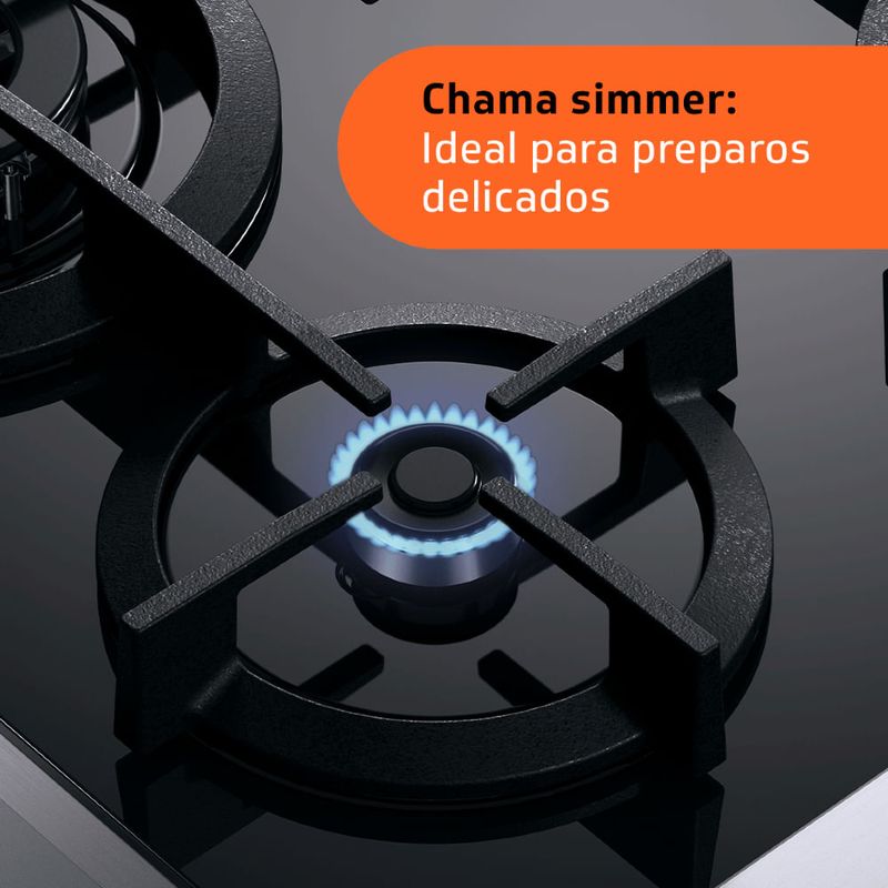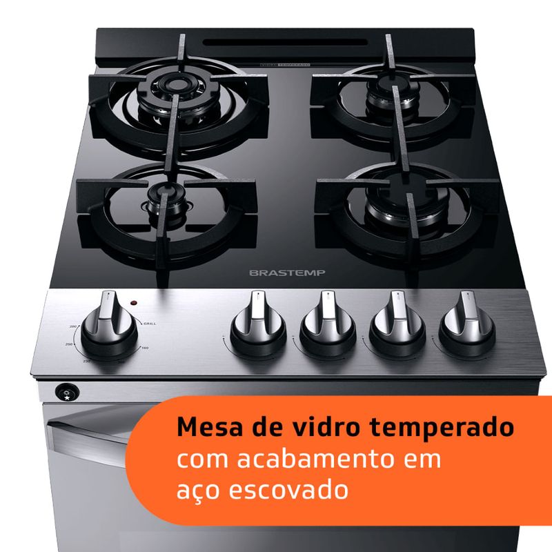 O Fogão Brastemp Mesa de Vidro 4 Bocas inox possui acabamentos em aço escovado, garantindo máxima sofisticação para sua cozinha. Com a dupla chama, proporciona potência e velocidade para suas receitas, enquanto a chama simmer é perfeita para os preparos mais delicados, como molhos e coberturas. Além disso, traz ainda o grill elétrico, ideal para gratinar e dourar seus alimentos.