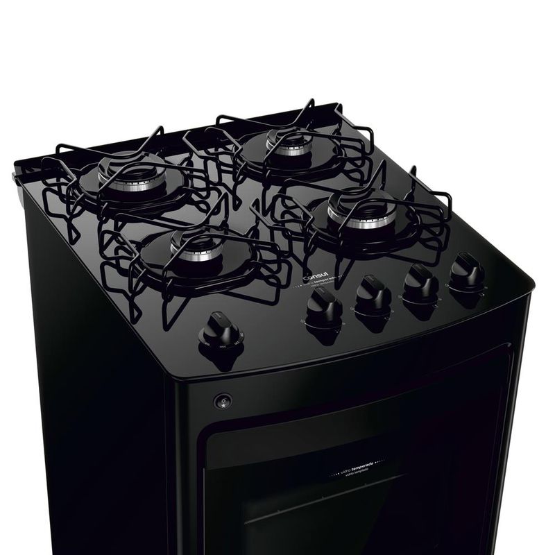 Fogão Consul 4 bocas preto com mesa de vidro, super moderno e combina com toda cozinha. Possui grades individuais super estáveis, trazendo mais estabilidade para as panelas, além de queimadores rápidos que proporcionam velocidade para os preparos do dia a dia, tudo isso com muita segurança!