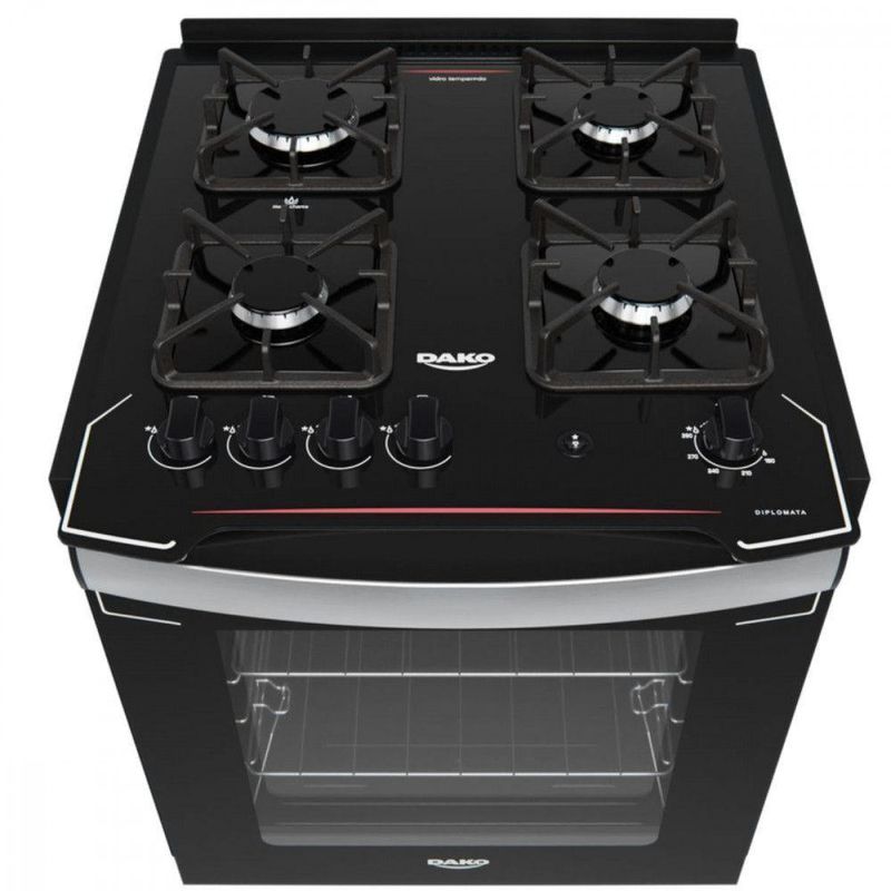 Fogão De Embutir 4 Bocas Dako Diplomata Com Mesa De Vidro Preto Bivolt