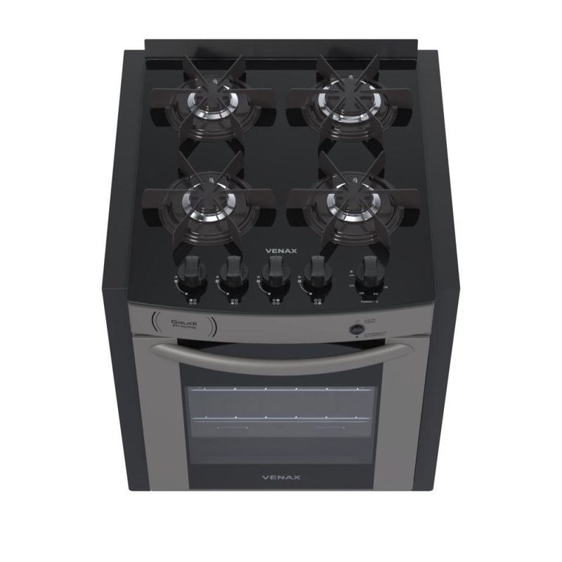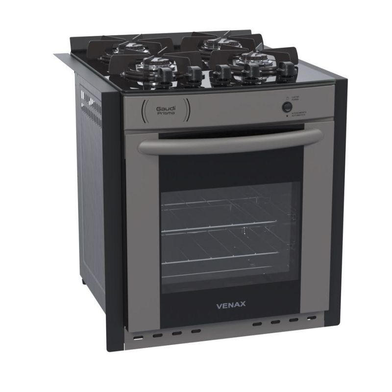 Fogão de Embutir 4 Bocas Venax Gaudi Prisma Vitreo BL Grafite a Gás GLP Grafite