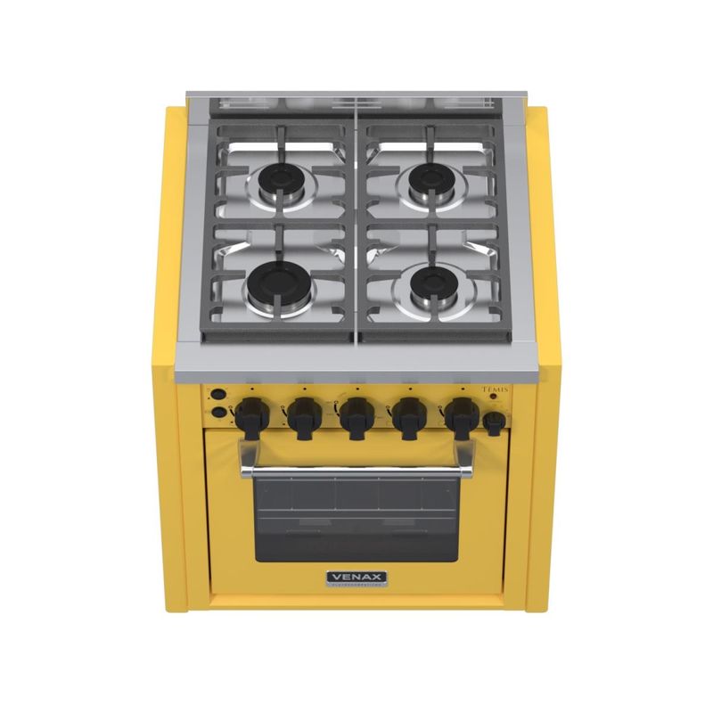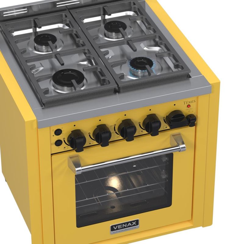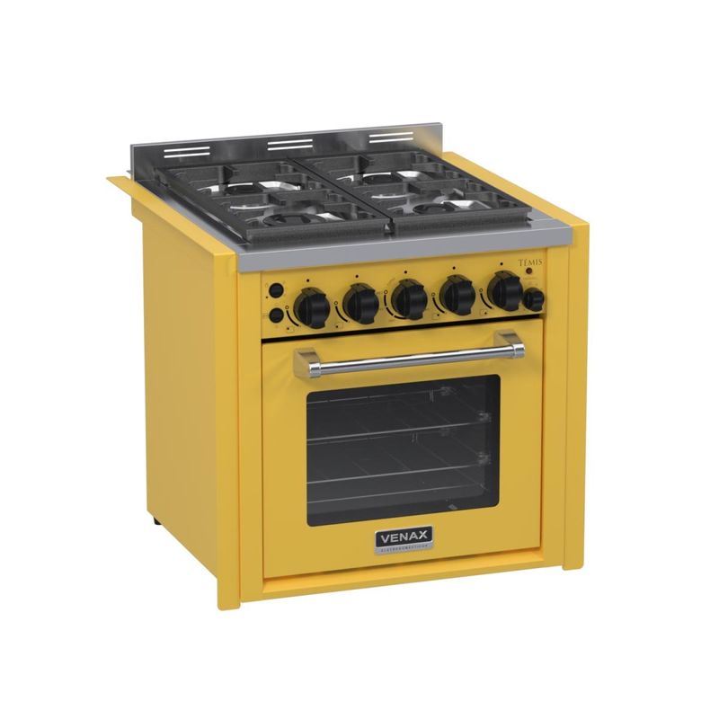 Fogão de Embutir 4 Bocas Têmis, com Acendimento Automático Total, Visor na Porta do Forno, Trempes Duplas de Ferro Fundidos, Mesa de Inox, Luz no Forno, Puxador na Porta do Forno em Aço Cromado, Porta Removível, Grill Dourador no Forno com Timer, Duas Grades Deslizantes no Forno, Bandeja Coletora de Gordura no Forno, Espeto Giratório, Forno Easy Clean.