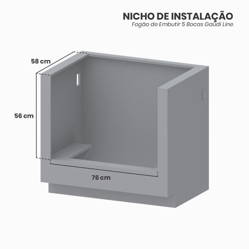 Potência Queimadores Mesa: 3,0kW (tripla chama); 1,80kW (Queim.Grande); 1,35kW (Queim.Médio)