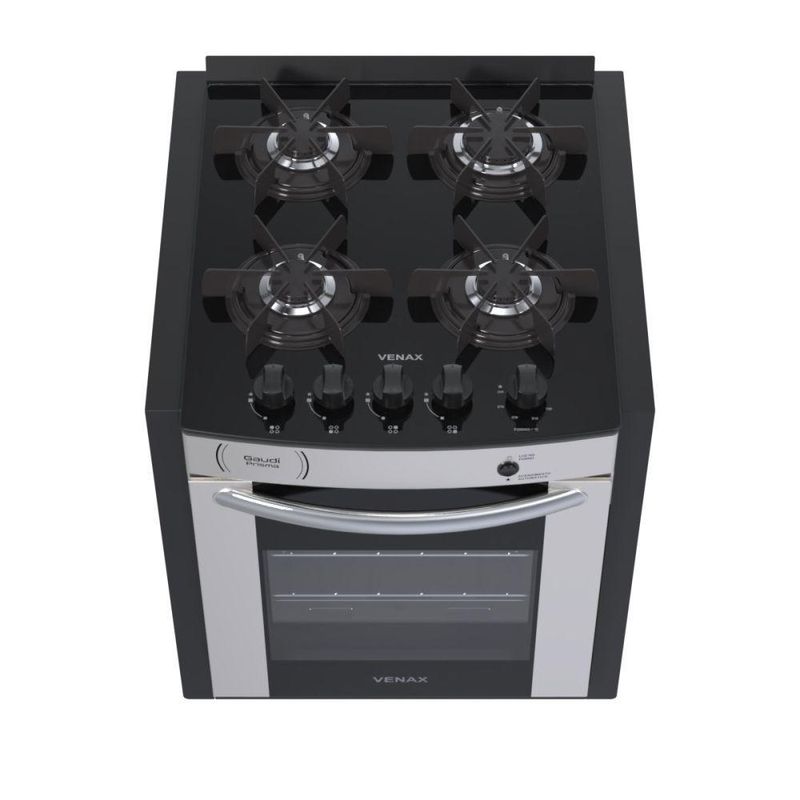 Fogão de Embutir Venax Gaudi Prisma Vitreo BL 4 Bocas a Gás GLP Inox
