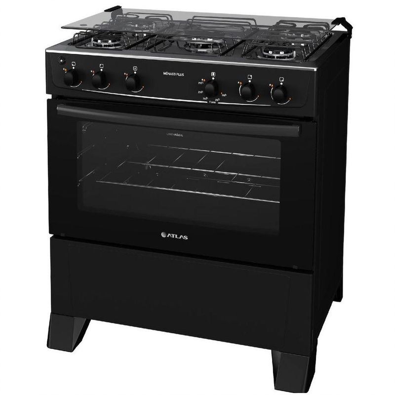 Fogão De Piso Atlas 5 Bocas Monaco Plus Preto Bvolt