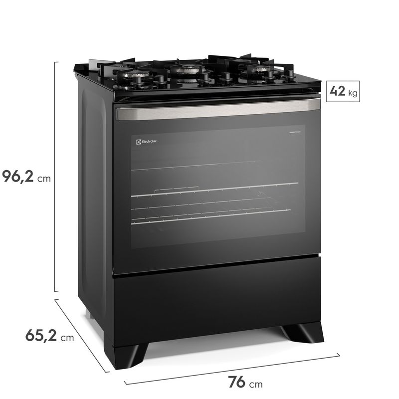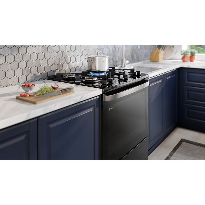 Suas receitas ficarão mais rápidas e saborosas com o Fogão Electrolux 5 Bocas Preto com VaporBake®. Tecnologia e praticidade na sua cozinha!
