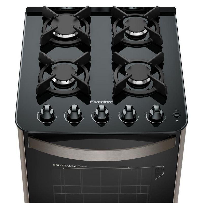 Fogão Esmaltec Esmeralda Glass 4 Bocas Inox Com Forno Autolimpante E Acendimento Automático