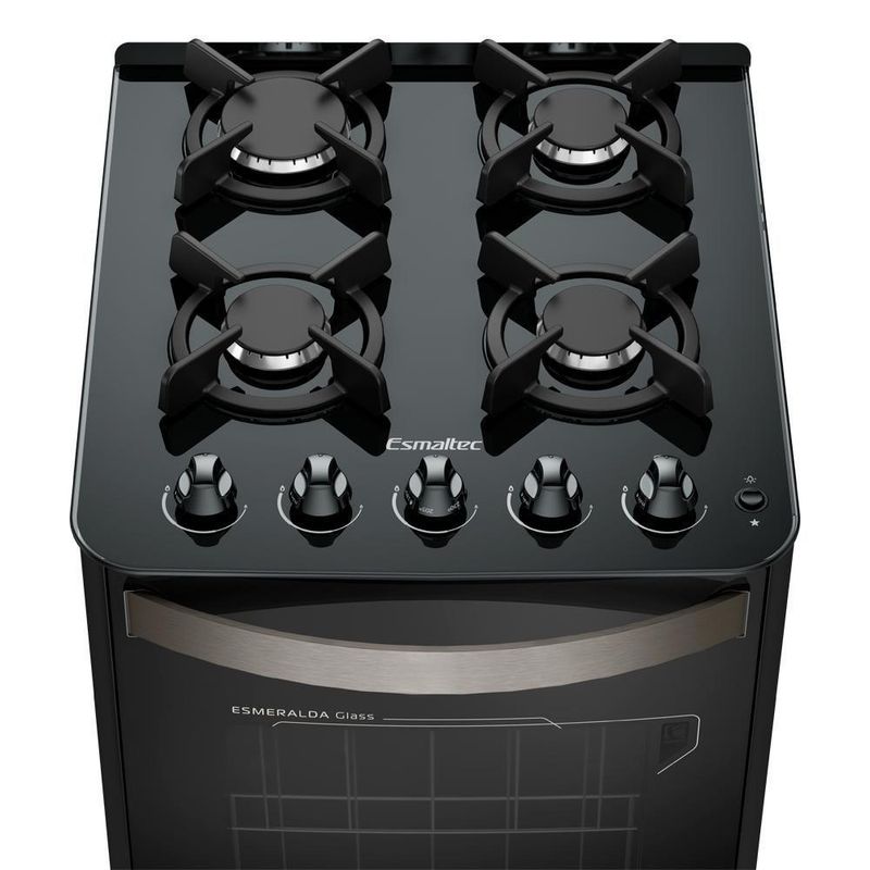 Fogão Esmaltec Esmeralda Glass 4 Bocas Preto Com Forno Autolimpante E Acendimento Automático