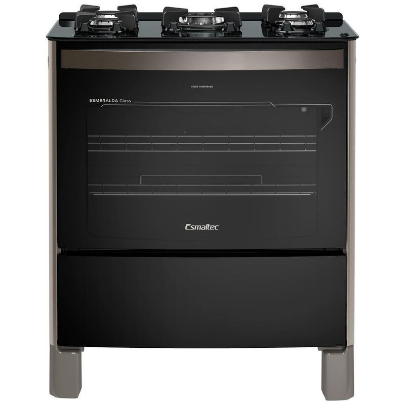 Fogão Esmaltec Esmeralda Glass 5 Bocas Inox Com Forno Autolimpante E Acendimento Automático