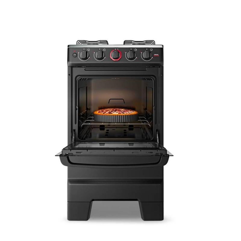 O Fogão Esmaltec Ideal Super 4 Bocas oferece soluções funcionais para o preparo diário de refeições. Sua mesa em aço inox com espaldar proporciona durabilidade e visual moderno, além de facilitar a higienização após o uso.O acendimento automático torna o manuseio mais prático e seguro. Com trempes duplas em aço esmaltado, o fogão garante estabilidade durante o preparo. Os queimadores possuem potência adequada para diferentes receitas: um queimador família de 2,0kW e três de 1,7kW, ideais para atender diversas necessidades de cozimento.O forno Limpa Fácil, com capacidade de 50 litros, é equipado com porta de vidro total, vidro interno removível e uma prateleira deslizante, o que contribui para a organização e a facilidade de limpeza. O puxador ergonômico oferece conforto no dia a dia, enquanto os pés altos e retos permitem encaixe rápido, agregando praticidade à instalação.Um fogão que une funcionalidade e cuidado em cada detalhe.Especificações Técnicas:
