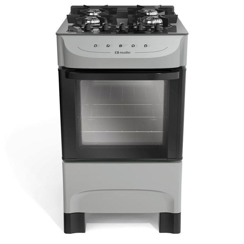 Os fogões Mueller saem da fábrica regulados e preparados para funcionar com gás liquefeito de petróleo (GLP). Para a conversão do produto para Gás GN é necessário solicitar o atendimento de um dos nossos postos autorizados. Assim que receber seu produto, entre em contato com o SAC Mueller e solicite sua conversão. Será necessário informar o número de série do produto. A conversão é sem custo dentro do prazo de garantia se o produto não tiver sido utilizado. Voltagem: Bivolt | modelo: MFV4BB 4B Titânio | Porta do Forno: De Vidro | Queimadores: de aço esmaltado em preto fosco | Altura (cm): 87cm | Cor: Titânio | Marca: Mueller | Tipo do Fogão: A Gás, de Piso | Mesa: Em vidro temperado | Prateleiras do forno: Uma grade ajustável em dois níveis de altura | Peso (Kg): 19,75Kg | Tipo de acendimento: Acendimento automático total, na mesa e no forno | Largura (cm): 48,5cm
