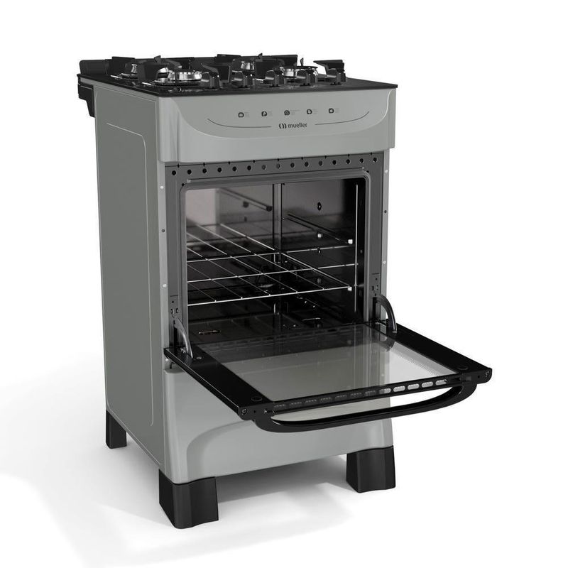 Fogão Mueller Titânio 4 Bocas Com Mesa De Vidro E Acendimento Mfv4bb O Fogão 4 Bocas com mesa de vidro e acendimento MFV4BB da Mueller possui diferenciais únicos que só os fogões Mueller com mesa de vidro têm. Possui grades de aço esmaltado individuais com 6 pontos de apoio e o sistema exclusivo de encaixe das grades, queimadores família e médios que agilizam o preparo de suas receitas. Possui acendimento automático total dos queimadores da mesa e do forno e botões sobrepostos a mesa, que oferece mais conforto no manuseio. Além disso, o Fogão MFV4BB possui porta com visor panorâmico para uma melhor visualização do interior do forno. E para facilitar ainda mais sua rotina de limpeza o Fogão MFV4BB possui forno com interior Total Clean, uma tecnologia que facilita a limpeza.