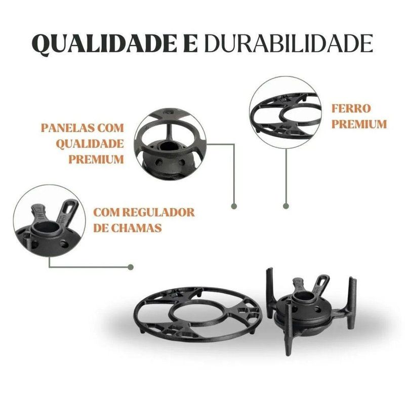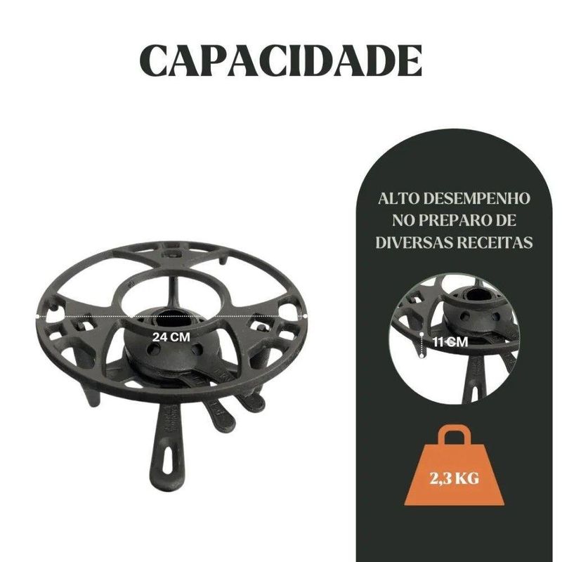 Fogareiro Fogo Forte Com Aparador 24 Cm Ferro Fundido Panela Mineira