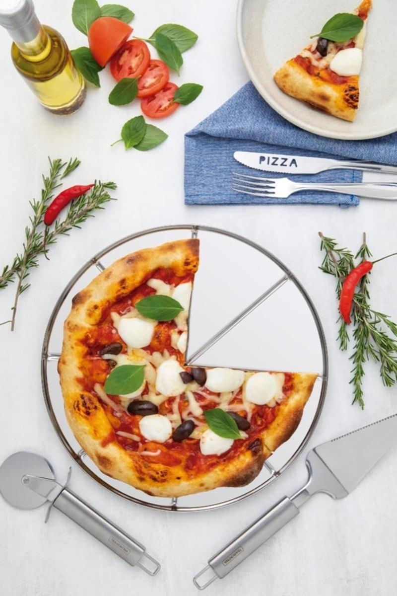 - Contém vincos em formato triangular que facilita o corte da pizza.