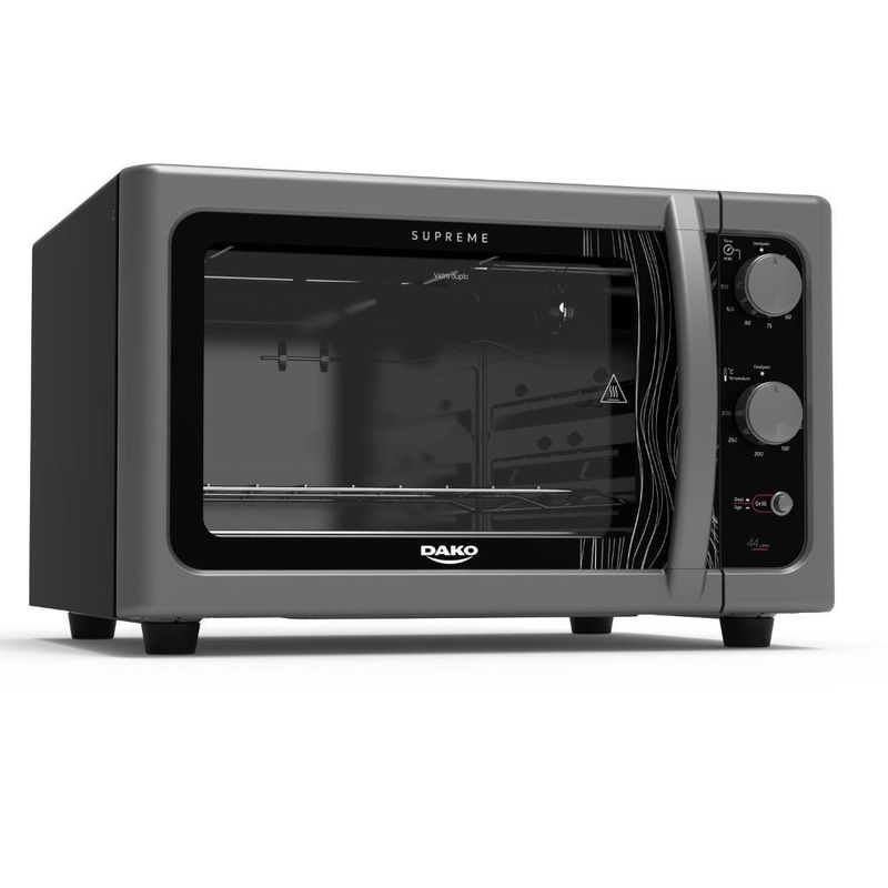 O Forno de Bancada Dako Supreme, além da beleza traz praticidade e agilidade à cozinha. Possui perfeita potência de 1750W e porta com vidro duplo temperado que pode manter por mais tempo o calor interno, reduzindo o consumo de energia elétrica. Possui pés antiderrapantes que oferecem mais estabilidade e segurança e conta ainda com termostato automático de 50ºC a 300ºC, sem esquecer do timer de até 120 minutos com aviso sonoroCaracterísticas: