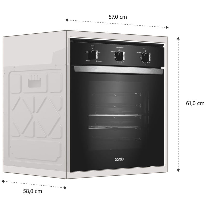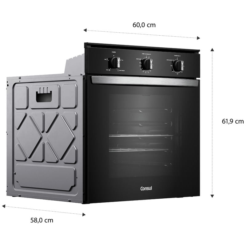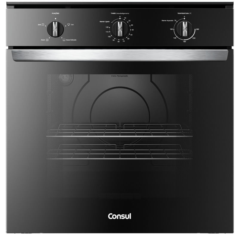 Forno de embutir elétrico Consul 84L preto com Timer Autodesligamento e Grill COB84BE
