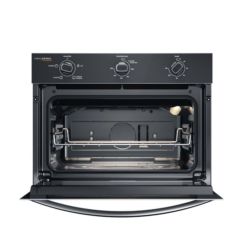 Esse forno também conta com a Função Manter Aquecido, responsável por manter os alimentos sempre na temperatura ideal antes de servir, além do Timer Mecânico, que desliga o forno automaticamente de acordo com o tempo programado, oferecendo tranquilidade e segurança a cada preparo.