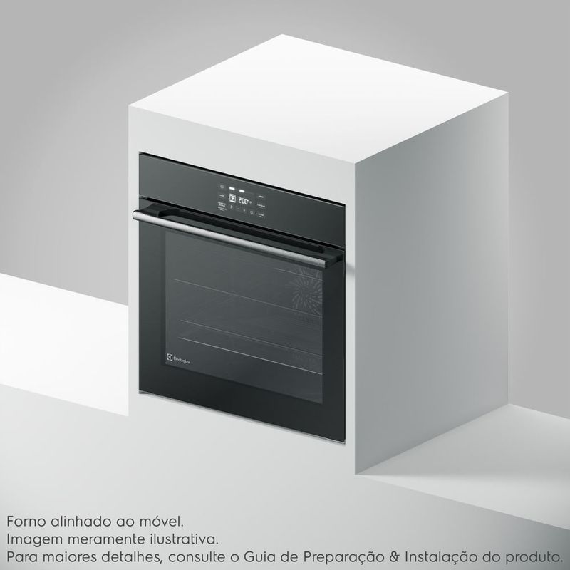 O Forno de Embutir Elétrico de 80 litros tem alta capacidade, ideal para quem gosta de cozinhar grandes quantidades. A instalação é gratuita, basta solicitar o serviço em uma Autorizada Electrolux.