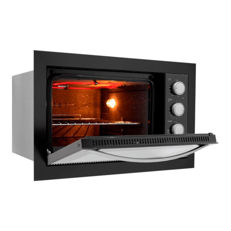 O Forno Elétrico de Embutir Fischer Fit Line 48 litros foi desenvolvido para oferecer praticidade, eficiência e um design moderno para cozinhas planejadas. Com frontal em aço carbono ou inox, ele entrega um visual sofisticado e harmoniza com diferentes estilos de ambiente. Possui isolamento térmico total, porta com vidro duplo que conserva o calor interno e contribui para a economia de energia, além de dourador para acabamentos perfeitos nas receitas. O interior conta com revestimento autolimpante, facilitando a manutenção diária, bandeja esmaltada para resíduos, grade cromada removível e bandeja coletora que auxiliam no preparo dos alimentos com organização e segurança. O forno oferece controle automático de temperatura de 50°C a 320°C, timer programável de até 120 minutos e controle independente das resistências, garantindo mais precisão no preparo. Com iluminação interna, permite acompanhar o processo de cozimento sem a necessidade de abrir a porta. Disponível nas cores Preto, Branco e Inox, é a escolha ideal para quem busca funcionalidade com acabamento elegante. Dimensões: Altura 42 cm, Largura 66,5 cm, Profundidade 55 cm, Peso 16 kg.
