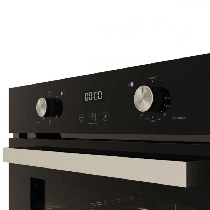 Forno Elétrico Infinity Touch de Embutir 220V Preto - Fischer 82L - Design sofisticado com frontal em vidro temperado e puxador em aço inox com acabamento escovadoO Forno Elétrico de Embutir Fischer Infinity Touch 82L Preto possui um design sofisticado com frontal em vidro temperado e puxador em aço inox com acabamento escovado. ;Seu sistema de turbo convenção deixa a comida mais saborosa.Ainda possui 5 funções especiais: lâmpada, descongelar, turbo, grill e turbo grill.A função turbo distribui o calor uniformemente ao assar, gratinar, aquecer, ideal para qualquer alimento. E comporta ainda, dois tipos de assados simultâneos.Embutimento, com o sistema de resfriamento interno do forno, evita excesso de temperatura no nicho de instalação, o que garante uma maior segurança ao produto, evitando assim o risco de super aquecimento no interior do móvel.Acabamento ;frontal em vidro temperado, mais seguro e fácil de limpar. Puxador em aço inox com acabamento escovado. Revestimento do corpo interno em Easy Clean preto (esmalte protetor especial que facilita a limpeza)