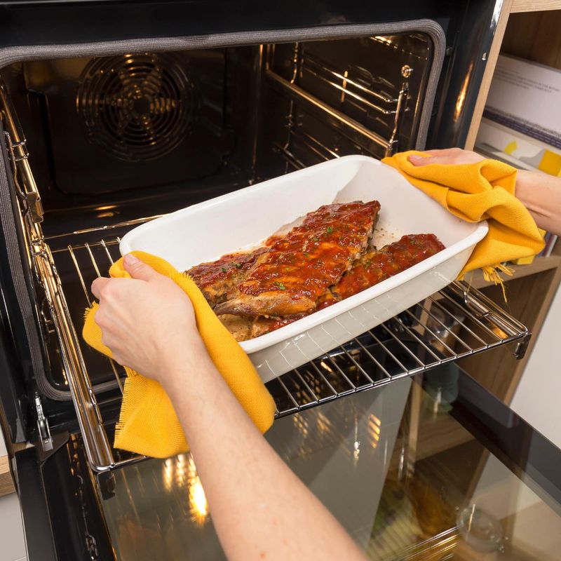 - Porta do forno de vidro triplo com um defletor de calor (CoolDoor)