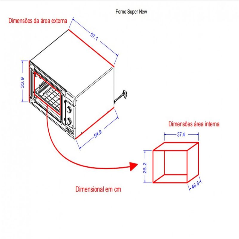 Dimensões internas do produto L 37,4 cm x A 26,2 cm x P 46,5 cm