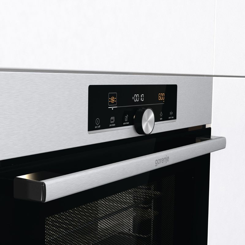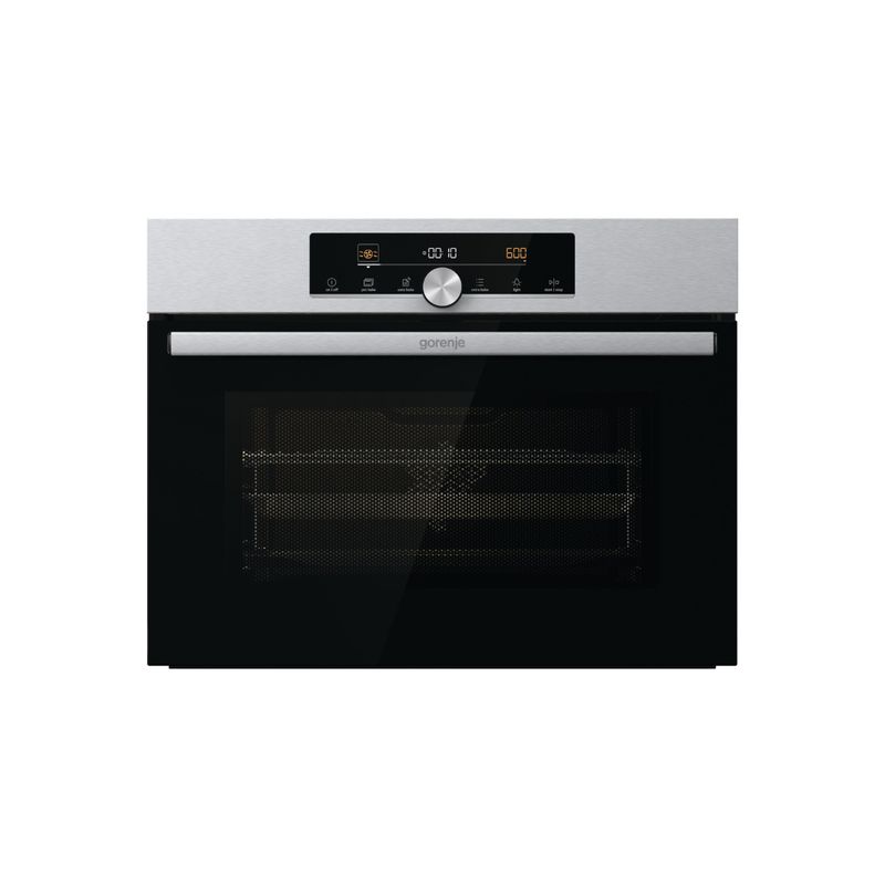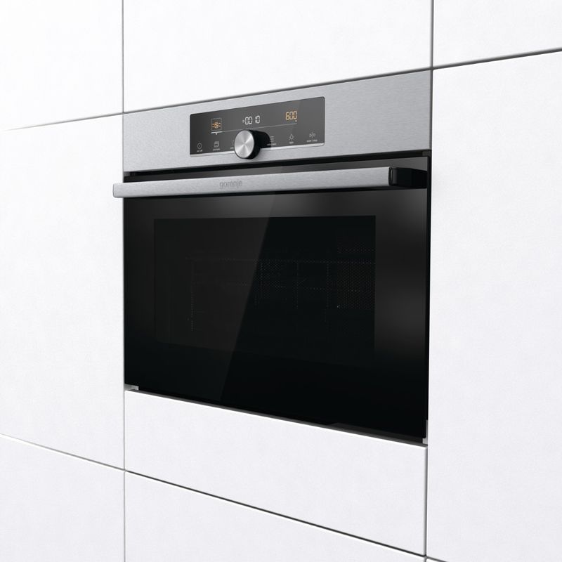 O revolucionário Forno elétrico compacto combinado com função micro-ondas da Gorenje com conectividade remota por Wifi, traz inúmeros recursos, tecnologias inovadoras e extrema funcionalidade. Com 12 modos pré-programados, 22 programas automáticos, modos especiais de cozimento: profissional, automático e funções extras.O Forno elétrico compacto padrão 45 combinado com a função micro-ondas incorporada da Gorenje inova com uma tecnologia muito utilizada nas cozinhas profissionais, a combinação de funções de um forno elétrico multifunção com micro-ondas. A cocção de um forno convencional com uma velocidade de preparo até 3 vezes maior. Para situações onde a velocidade de preparação e o acabamento dos pratos fazem toda diferença.Forno tem capacidade útil XL equivalente a 50 Litros**, 12 modos pré-programados, 22 programas automáticos, modos especiais de cozimento: profissional, automático e funções extras e mais: AirFry, Pizza, Sabbath, Pré aquecimento rápido automático.