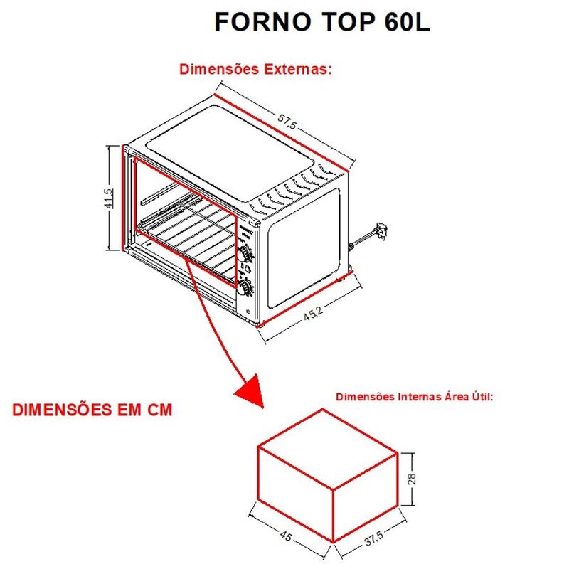 Dimensões internas do produto L 45 cm x A 28 cm x P 37,5 cm