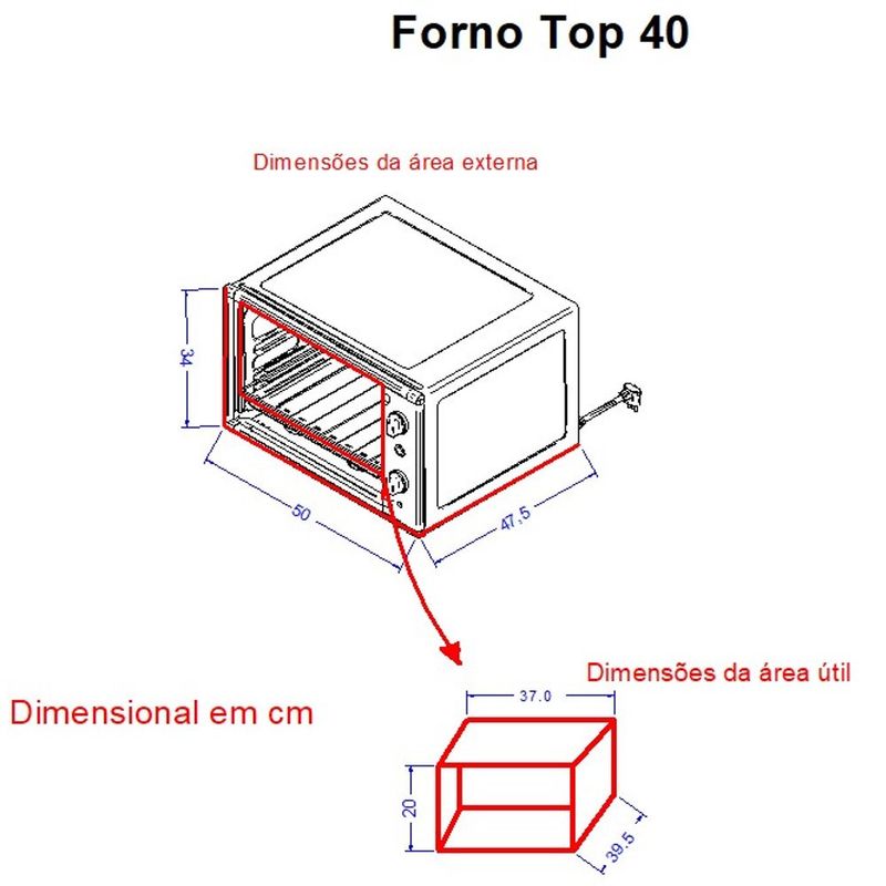 01 Forno Terim Elétrico Bancada Top 40 Jatobá 40 Litros