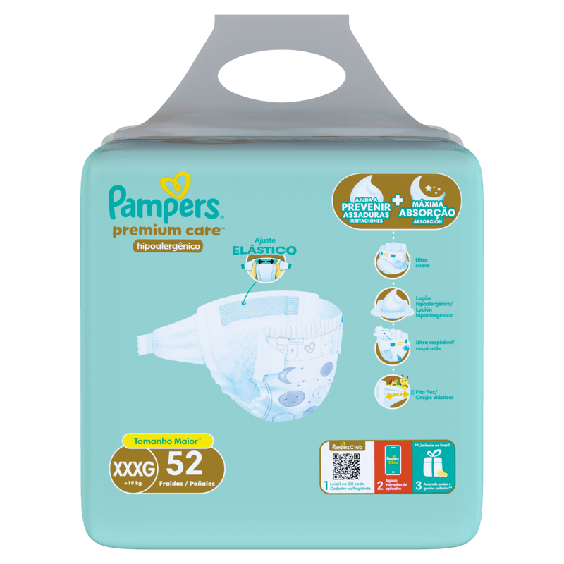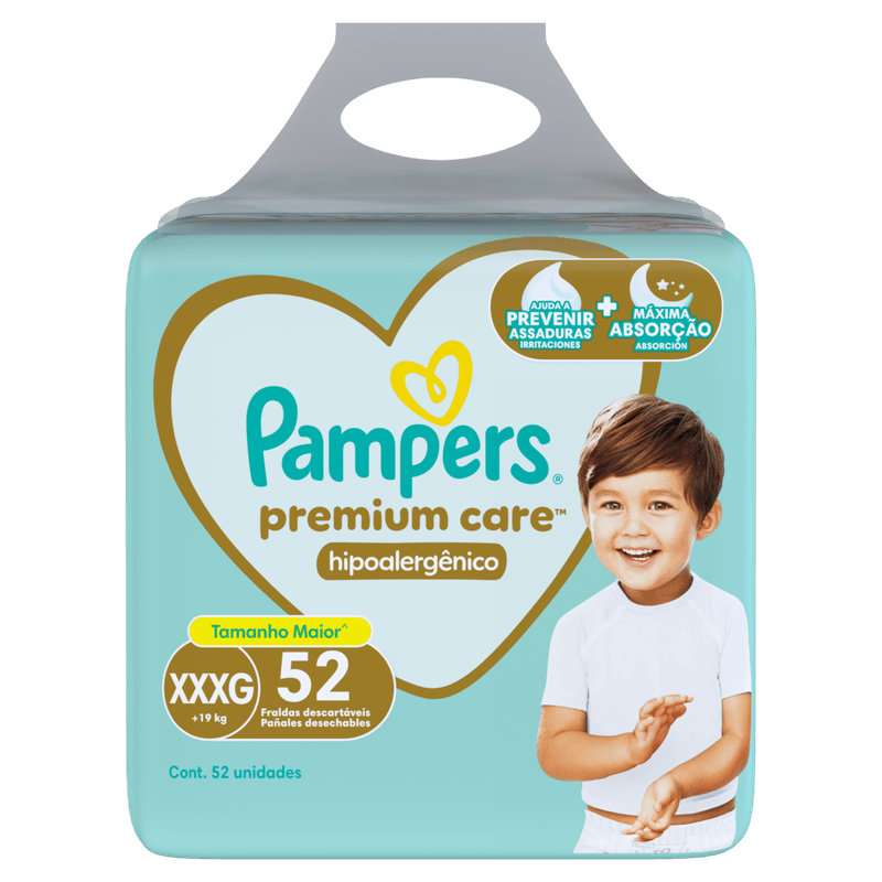 Fralda Descartável Infantil Pampers Premium Care XXXG Pacote 52 Unidades