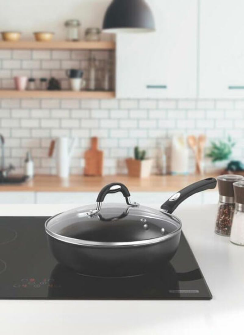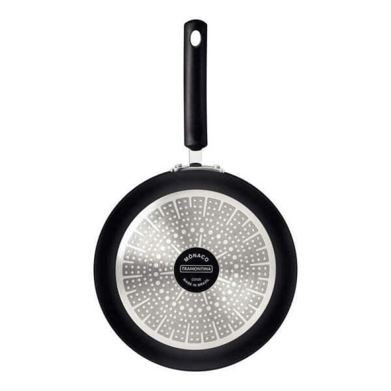 A Frigideira Funda Tramontina Mônaco Induction em Alumínio com Revestimento Interno e Externo Antiaderente Starflon Premium Preto com Tampa de Vidro 24 cm de diâmetro 2,7 L é a escolha ideal para garantir o sucesso das suas receitas! Desenvolvida em alumínio com revestimento antiaderente Starflon Premium, características que juntas, evitam que os alimentos grudem em sua superfície, as torna mais durável e não prejudicial à sua saúde. Ela acompanha tampa de vidro temperado com bordas em aço inox e saídas de vapor que facilita o preparo dos alimentos e proporciona a visualização sem a necessidade de abrí-la. Seu cabo é metálico com proteção de silicone e reduz a propagação de calor, aumentando a segurança e melhorando seu manuseio. Além disso, ela possui espessura especial de 3 milímetros, que proporciona o cozimento de maneira uniforme e rápida. Com a Tramontina, você tem os melhores itens para sua cozinha!Recomendações de Uso:A capacidade volumétrica máxima para cozimento é de 3/4 da capacidade total da peça.