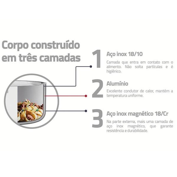 Para deixar seu dia a dia mais prático e cheio de estilo, a frigideira tramontina em aço inox corpo triplo com revestimento interno antiaderente starflon premium com cabo 2,2 l da linha grano é uma peça que impressiona. Com tecnologia de corpo triplo (aço inox + alumínio + aço inox), permite um cozimento mais rápidos dos alimentos. O desenho sem cantos torna a limpeza muito mais fácil, além de poder ser lavada diariamente na máquina de lavar louças. Possui 26 cm de diâmetro e revestimento interno de antiaderente, ideal para realizar qualquer receita. Com design moderno e de bom gosto, possui acabamento em alto brilho, tornando ela uma peça com excelente apresentação ao ser servida à mesa. Pode ser utilizada em fogões à gás, elétricos, vitrocerâmicos e por indução.