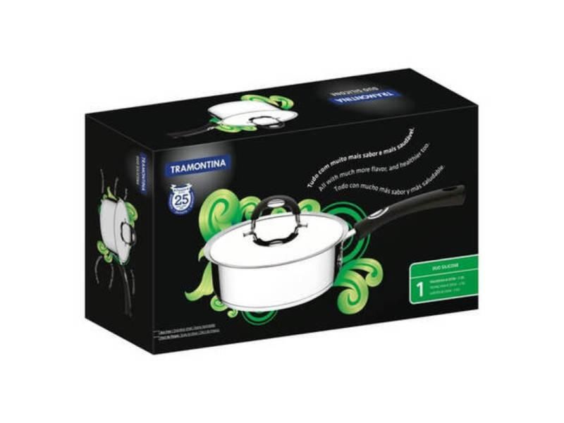 Para quem gosta de preparar diferentes receitas e valoriza praticidade, a Frigideira Tramontina em Aço Inox com Fundo Triplo, Tampa e Cabo de Silicone 20 cm 2,1 L é uma aliada indispensável. Desenvolvida pela linha Duo Silicone, ela conta com tampa com saída lateral de vapor, que evita o vácuo durante o preparo. O cabo e o pegador com revestimento em silicone antitérmico garantem segurança e conforto ao manusear. Seu corpo em aço inox com fundo triplo (aço inox + alumínio + aço inox) distribui o calor de forma uniforme, acelerando o cozimento e garantindo ótimos resultados. Ideal para quem quer mais eficiência e controle em cada preparo na cozinha.