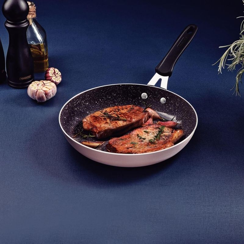 Dê um upgrade nas suas habilidades culinárias com a frigideira Tramontina Tunis em alumínio com revestimento interno cerâmico antiaderente e externo siliconado rosa trufado 24 centímetros de diâmetro 1,6 litros. Ela é a escolha perfeita para aprimorar o preparo das suas refeições, tendo estrutura desenvolvida em alumínio com revestimento interno cerâmico antiaderente e externo siliconado, que proporciona um cozimento rápido e eficiente dos alimentos, sem que eles grudem na superfície. Com um design elegante e funcional, essa frigideira garante durabilidade e segurança durante o manuseio, devido ao seu cabo metálico com proteção em silicone e seu fundo para fogão de indução. Aproveite toda a qualidade e versatilidade da linha Tunis e experimente a alta performance em sua cozinha!