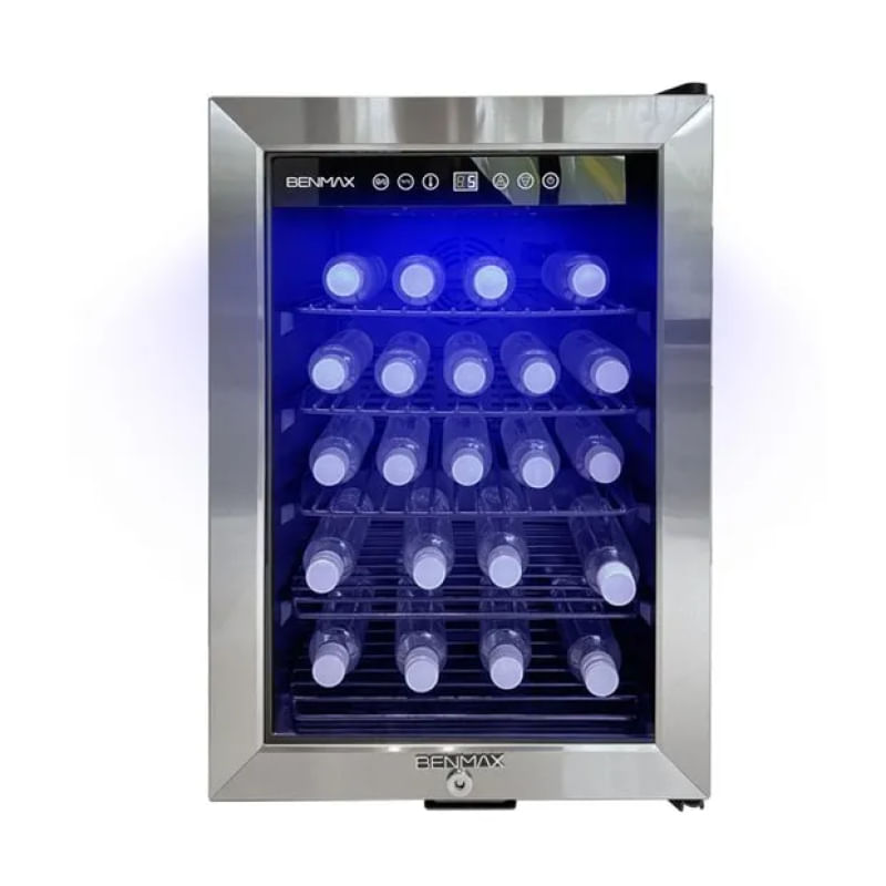 Porta frontal em aço inoxAcabamento sem emendasPrateleiras em metal cromado removíveisFiltro de carvão ativadoPorta com vidro duploPés reguláveisIluminação LED