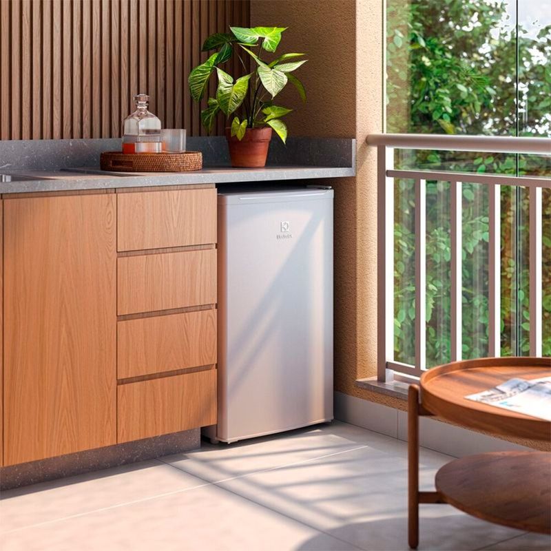 A certificação de Eficiência Energética A garante economia de até 30² e evita o desperdício. O Frigobar possui tamanho compacto, mas é espaçoso! Ele pode ser colocado sob o armário enquanto fornece 122 Litros de capacidade, armazenando confortavelmente bebidas e alimentos de diferentes formatos.