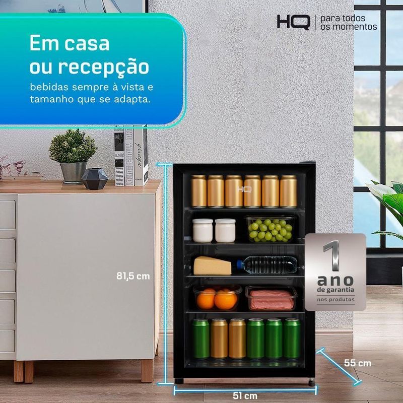 O Frigobar Expositor HQ-130FBPVL é a escolha ideal para quem precisa de maior capacidade de armazenamento com a elegância de uma vitrine. Com sua porta de vidro e iluminação interna, suas bebidas ficam sempre em destaque. As prateleiras de vidro ajustáveis permitem adaptar o espaço interno para latas e garrafas maiores, oferecendo máxima versatilidade.É perfeito para residências com áreas gourmet movimentadas, salas amplas, quartos de hóspedes, e também para ambientes profissionais como recepções e salas de espera.Por que ter um Frigobar Expositor HQ?Mais Volume, Menos Bagunça: Mantenha tudo visível, organizado e separado por categoria.