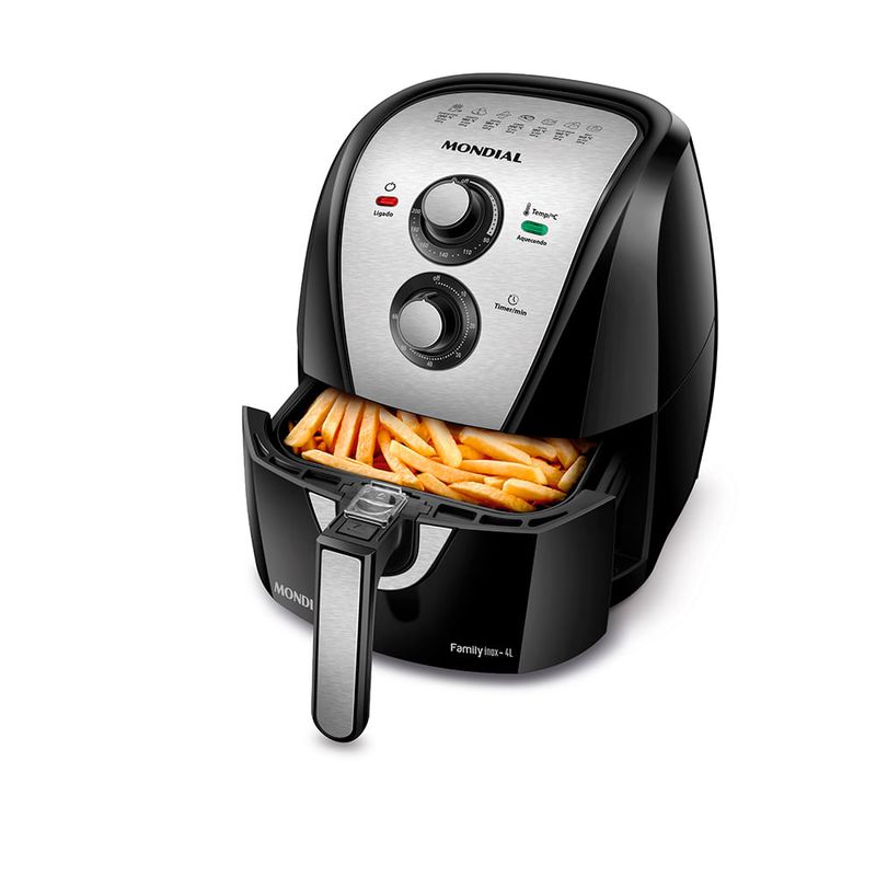 Prepare receitas do café da manhã ao jantar com a Air Fryer Mondial. E o melhor: de forma prática, rápida e saudável! A Tecnologia de Circulação de Ar Quente cozinha, frita (a ar), assa ou tosta os alimentos sem precisar adicionar óleo ou manteiga. Aliada à alta potência, a tecnologia da Fritadeira a Ar também possibilita rapidez nos preparos. O cesto quadro com capacidade de 4 litros acomoda melhor os alimentos, permitindo assar por igual. Saiba mais sobre a AFN-40-BI: