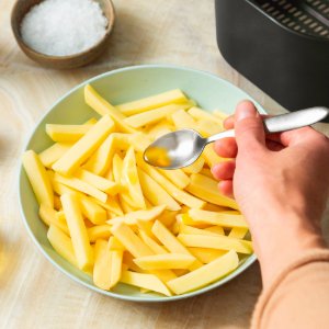 A tecnologia Rapid Air, com seu design "estrela“ patenteado, faz o ar quente girar para preparar alimentos deliciosos, crocantes por fora e macios por dentro, com pouco ou nenhum óleo adicional.