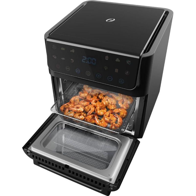 Diferenciais do Produto:Painel Touch Colorido com 12 Funções: Moderno e intuitivo, o painel digital colorido oferece 12 funções pré-programadas para escolher entre diversas opções de preparo com apenas um toque.Grande Capacidade de 12L com Acessórios: Espaço de sobra para grandes receitas, acompanhado de acessórios essenciais como cesto de fritura, espeto rotisserie, grelha e bandeja coletora.Alerta Shaking Time: Um recurso inteligente que emite um aviso sonoro para você saber o momento ideal de virar ou mexer o alimento, garantindo um cozimento uniforme.Porta Removível para Fácil Limpeza: A porta do forno pode ser removida completamente, tornando a limpeza interna do produto muito mais prática e rápida.