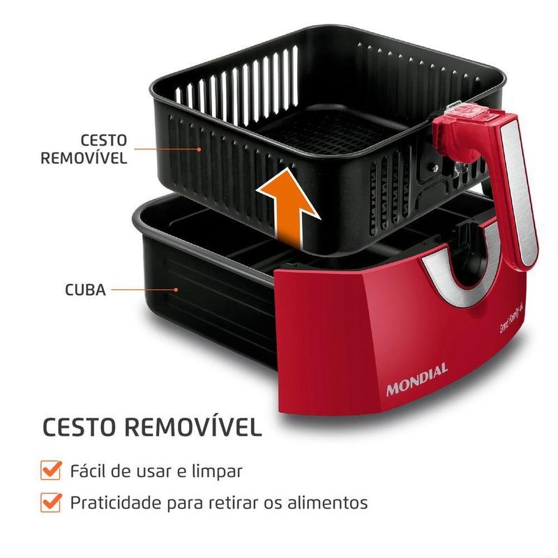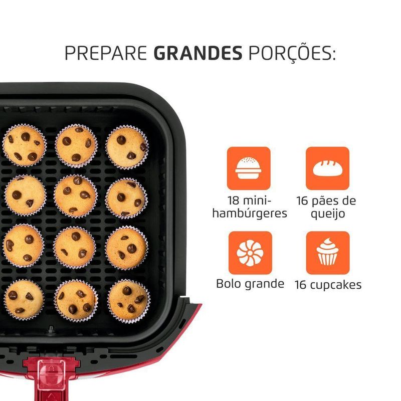 CAPACIDADE DE 6 LITROS + CESTO QUADRADO: O formato do cesto acomoda melhor os alimentos, permitindo assar por igual. Além disso, proporciona maior aproveitamento do espaço do cesto.