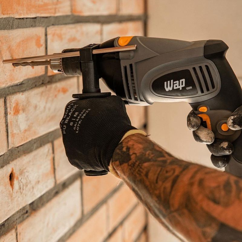 A WAP EFPI 1000 possui botão comutador que permite selecionar a função com ou sem impacto. Além disso, conta com limitador de profundidade métrico em metal, que serve para limitar a profundidade do furo, de acordo com a necessidade do usuário, executando perfurações de forma eficaz.