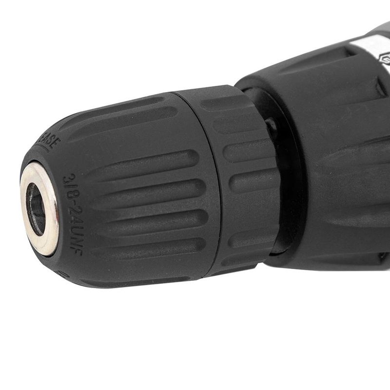 Especificações: Função: Furação e perfuração Configuração de torque 15+1 Velocidade de rotação 750rpm Mandril 10mm (3/8") Material: Plástico, borracha e aço Capacidade de Perfuração: Capacidade do mandril: 10mm (3/8”) Capacidade do corte em madeira: 25mm Capacidade do corte em alumínio: 10mm