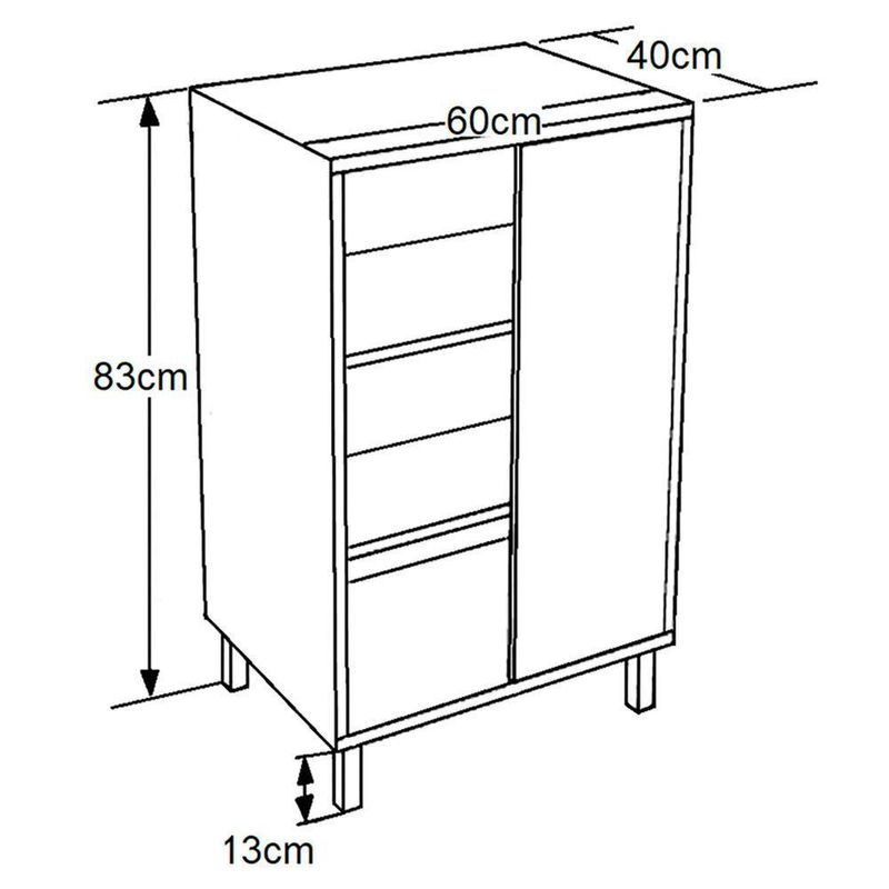 Características adicionais: acompanha 1 porta de correr, 5 nichos, pés em ABS reguláveis.