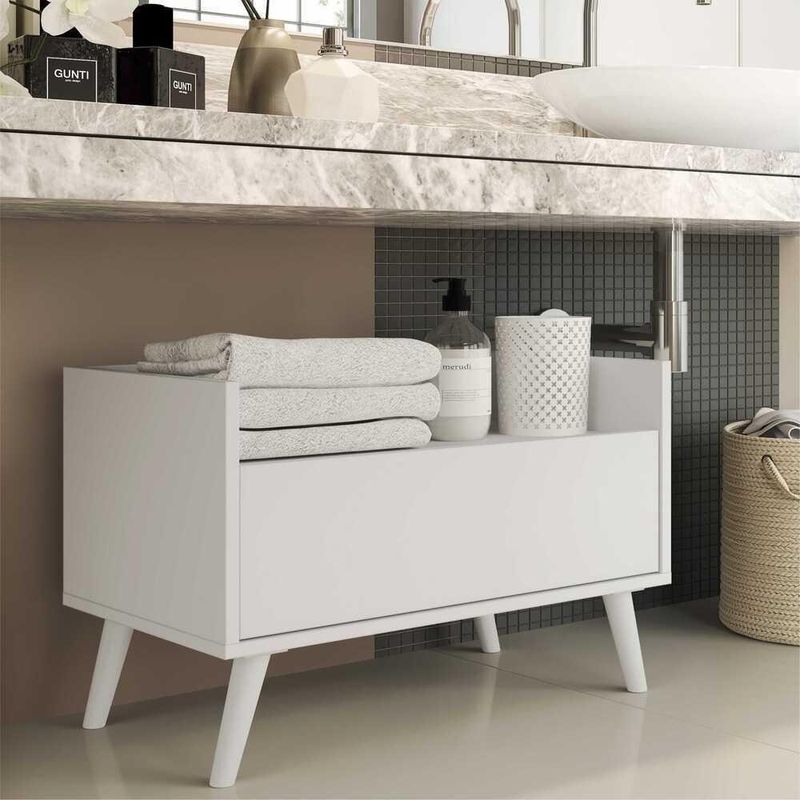 O Gabinete Armário Banheiro 60cm Retrô Multimóveis é uma solução prática para você aproveitar aquele espaço restrito e complementar seu ambiente. Produzido em MDP com acabamento acetinado (cerca de 20% de brilho), que garante maior durabilidade e facilidade na limpeza, possui 1 gaveta com amplo espaço interno e corrediças metálicas que proporcionam mais leveza no manuseio. Os pés retrô, em polipropileno, dão um charme especial ao móvel deixando-o com um visual leve e permitindo você compor um ambiente com ar vintage e moderno ao mesmo tempo. Seu design clean permite que ele seja utilizado em diferentes ambientes, adaptando-se conforme sua necessidade.