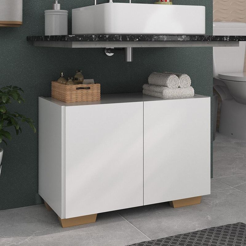 Renove o seu banheiro com estilo e praticidade com o Gabinete Armário de Banheiro 62,5cm 2 Portas com Pés Multimóveis MP5046. Fabricado em MDP com acabamento acetinado (cerca de 20% de brilho), garante durabilidade e resistência. Com suas 2 portas, você poderá organizar os seus itens de higiene pessoal. Seu design clean proporciona um visual moderno e sofisticado ao móvel. Além disso, possui pés quadrados em polipropileno que oferecem estabilidade e charme ao móvel. Suporta até 6kg no seu interior e 6kg no tampo.