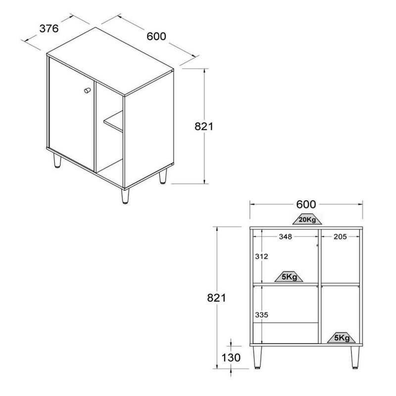 Especificações Técnicas:Gabinete Banheiro 1 Porta 2 Prateleiras 60 cm BN06 Dtall